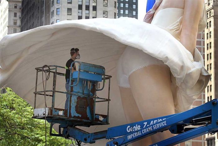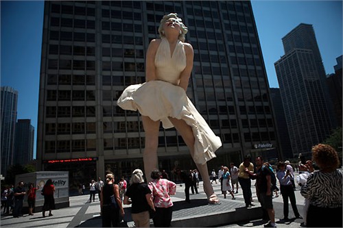 kỷ 20" đã được tạc tượng cao tới 8m và đặt tại Chicago.Hôm qua, 15/7, rất nhiều người dân và khách du lịch đã có mặt ở khu Magnificent Mile trên đại lộ Michigan, Chicago để tận mắt chiêm ngưỡng bức tượng thú vị của Marilyn Monroe. Bức tượng - là tác phẩm của nghệ sĩ điêu khắc Seward Johnson - được làm lại từ hình ảnh đã trở thành biểu tượng của "quả bom sex tóc vàng" trong bộ phim The Seven Year Itch năm 1955.