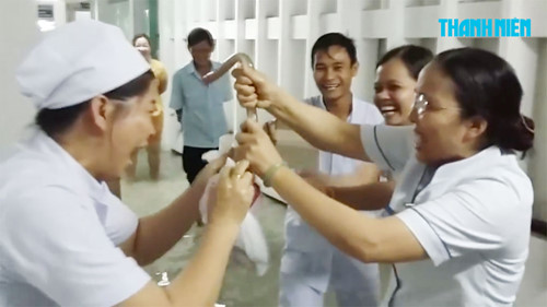 À còn nữa, các nữ y tá hò dô ta bắt lươn trong hành lang bệnh viện.