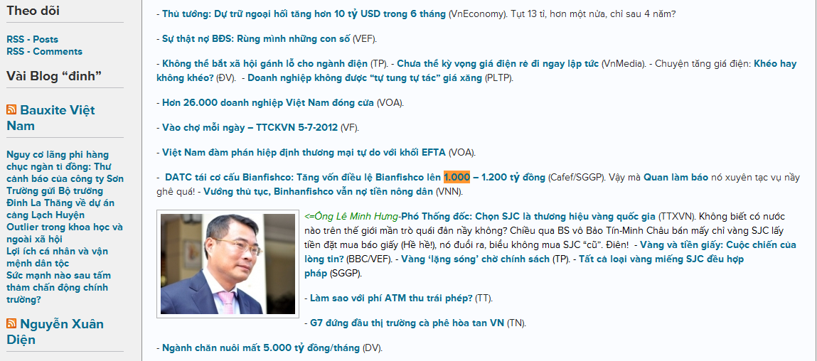 Hôm nay thứ năm ngày 05/07/2012, ABS lại điểm tin QLB một lần nữa và chỉ trích QLB đưa tin xuyên tạc: DATC tái cơ cấu Bianfishco: Tăng vốn điều lệ Bianfishco lên 1.000 – 1.200 tỷ đồng (Cafef/SGGP). Vậy mà Quan làm báo nó xuyên tạc vụ nầy ghê quá! - Vướng thủ tục, Binhanfishco vẫn nợ tiền nông dân (VNN).