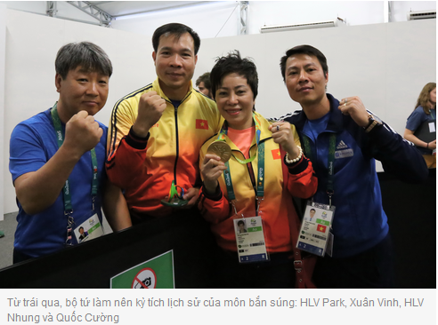 Sau khi lập nên chiến tích lịch sử ở Olympic, một trong những lời đầu tiên mà Hoàng Xuân Vinh nói cùng chúng tôi là sự tri ân dành cho HLV Nguyễn Thị Nhung. “Không có sự giúp đỡ của chị ấy trong cả tập luyện lẫn cuộc sống tinh thần, cá nhân, tôi đã không thể gặt hái được nhiều thứ như ngày hôm nay. Chị Nhung như một người chị ruột của tôi vậy” - xạ thủ 42 tuổi này cho biết. Trong tuyển bắn súng, mọi người vẫn thường đùa Vinh là “học trò cưng” của HLV Nhung.