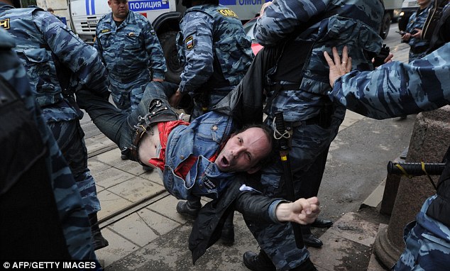 Cảnh sát Nga bắt người biểu tình tại Moscow phản đối Putin tháng 5/2012