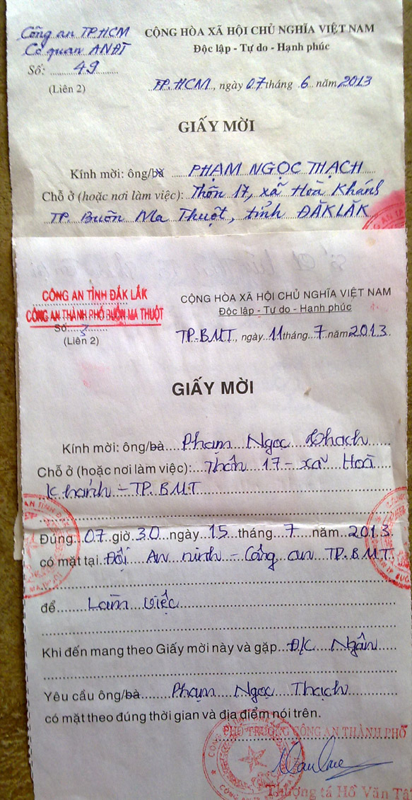 - Ngày 6 tháng 8 năm 2012 Mục Sư Phạm Ngọc Thạch cùng vợ đang mang thai 8 tháng và con nhỏ 3 tuổi bị công an phường Bình An, Quận 2 Sài gòn bắt giam và tra tấn dã man, khi cả gia đình đang trên đường đến Chùa Liên Trì để cùng Hòa Thượng Thích Không Tánh chăm sóc và phát quà cho các thương binh của Quân Lực VNC, các cựu tù lương tâm và các bệnh nhân ung bướu, nghèo. Tại cơ quan công an, kẻ hành hung Mục Sư Phạm Ngọc Thạch đã tự xưng là con trai của Bộ Trưởng Công An, nên muốn bắt bớ, hành hung bất cứ ai cũng được!