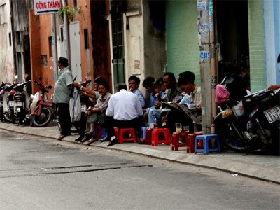 Gọi là quán nhưng đâu phải, ông mượn tạm bậc thềm nhà hát lớn làm chỗ ngồi cho khách. Một chỗ ngồi lý tưởng dành cho sinh viên nghèo ít tiền, giá đồ uống ông chỉ lời 1.000 tới 2.000 đồng mỗi ly và nhiều khi khách nợ không đếm xuể nhưng có ai nỡ xù của ông bao giờ.