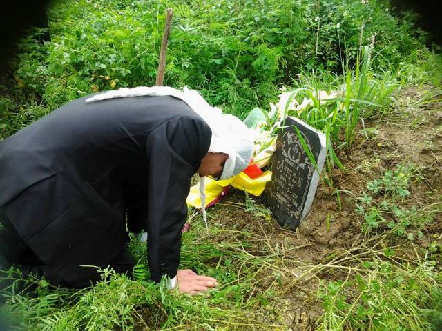 nấm mồ phủ đầy cỏ của người mẹ lâm bệnh nặng chờ tin con trong những