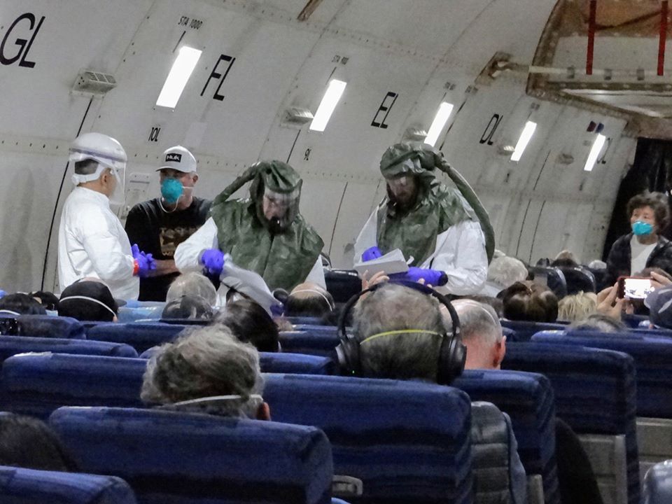 Báo New York Post (ngày 22/02/2020) tiết lộ những tấm hình “có một không hai” về chuyến bay “hồi hương” của 329 du khách Mỹ trên chiếc tầu du lịch Diamond Princess. Họ khởi hành từ ngoài khơi bờ biển Yokohama (Nhật Bản), nơi chiếc tầu đã bị từ chối cho cặp bến trong cơn đại dịch Corona.