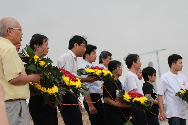 9 giờ sáng chủ nhật, 17/3 - đang chờ lấy hoa thì trời bỗng đổ mưa. Lo lắng quá chừng. Trong khi đi mua lịch túi để cắm vào mỗi vòng hoa, tôi chợt nghĩ: sao lại là 10 vòng hoa mà không phải là 12 vòng, tượng trưng cho một tiểu đội nhỉ? Vậy là hối hả chạy lại, bảo họ cắm gấp thêm cho 2 vòng nữa.