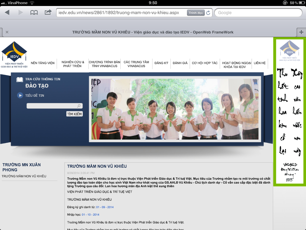 Trường Mầm non Vũ Khiêu là thuộc Viện Phát triển giáo dục và trí tuệ.