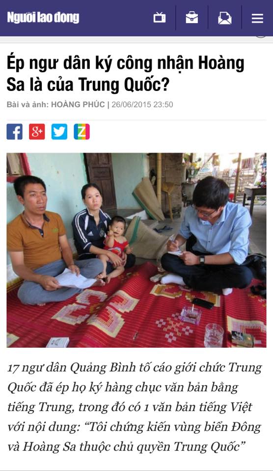 Việc Trung Quốc bắt ép 17 ngư dân ký vào văn bản thừa nhận biển đông là thuộc chủ quyền của chúng, cả bằng tiếng Tàu và tiếng Việt,