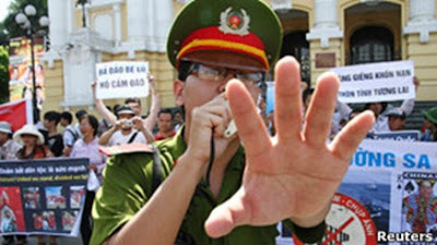 Trước hành động ngang ngược của nhà cầm quyền Trung cộng, nhiều nhân sỹ trí thức và cả nhân dân lao động đã nhiều lần gởi thỉnh nguyện thư lên chính phủ, lên lãnh đạo đảng và nhà nước cộng sản Việt Nam, đề xuất một số chính sách đối với những hành động gây hấn đến trấn cướp của Trung cộng, cũng như “xin” được biểu tình phản đối Tàu cộng xâm lược, nhưng tất cả những tâm thư, thỉnh nguyện thư và “đơn xin phép biểu tình” đều bị khước từ, bởi Thủ Tướng Nguyễn Tấn Dũng đã phát biểu như một chỉ đạo, khi tiếp kiến Tổng Bí Thư Tập Cận Bình rằng: “Trên tinh thần đồng chí, anh em… … không để vấn đề về biển Đông làm ảnh hưởng đến quan hệ hai nước.” Chính vì vậy mà khi Trung cộng biến Biển Đông thành ao nhà của chúng thì đảng và nhà nước cộng sản Việt Nam vẫn bình chân như vại, khi Trung cộng tuyên bố Hoàng Sa Trường Sa và Và Việt Nam (TAM SA) là của Tàn man thì tất cả lãnh đạo đảng và nhà nước cộng sản Việt Nam vẫn yên vui. Chẳng những thế, lãnh đạo đảng và nhà nước cộng sản Việt Nam còn ra lệnh cho các lực lượng an ninh, dân phòng ngăn chặn cuộc xuống đường biểu tình chống giặc ngoại xâm của đòng bào, bằng những hành động chận đường, đón ngõ, không để cho những nhân tố tích cực có mặt tại các điểm biểu tình. Các lực lượng an ninh đã đàn áp thô bạo để phá vỡ cuộc biểu tình sáng hôm nay, và đã bắt bớ nhiều người giam đưa đi giam cầm ở trung tâm phục hồi nhân phẩm Thanh Hà.