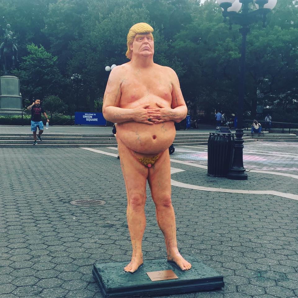 Báo The Washington Post cho hay nhà điêu khắc thực hiện khuôn để đúc ra một loạt 5 ông Donald Trtump khỏa thân nầy là một nghệ sĩ đường phố ở Las Vegas lấy tên nghệ nhân là Ginger (Gừng),