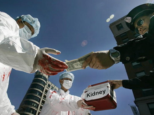 Một cảnh trong vở kịch do các học viên Pháp Luân Công biểu diễn tại Mỹ để "chào đón" Hồ Cảm Đào năm 2006, tố cáo việc mổ cắp nội tạng đã trở thành những thương vụ đem lại khoản lợi kếch xù tại Trung Quốc.Văn hóa của chính quyền Trung quốc có thể giúp giải thích tại sao các bác sĩ có thể nhận những khoản lợi nhuận như thế này. Như đối với ông Zhang, ông ta có thể biến con người thành một loại hàng hóa, vì linh hồn của ông ta đã đông cứng lại sau quá trình tẩy não.