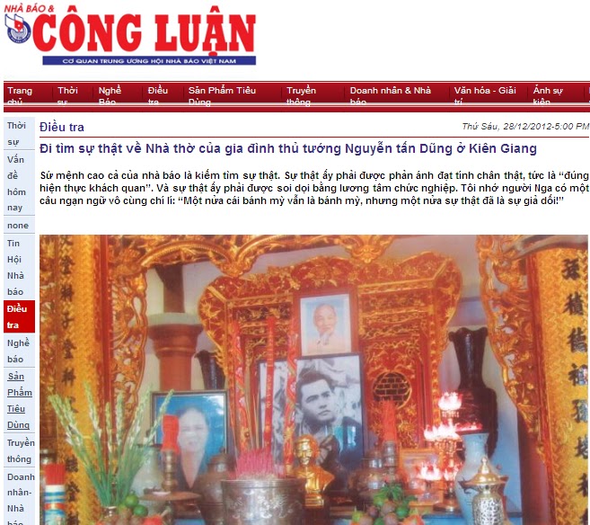 1 giờ sau, báo Vietnamnet đăng lại hình như ngượng thay đồng nghiệp to búa quá nên đã lượt bỏ câu trên và bỏ ảnh bàn thờ này là hợp lý.