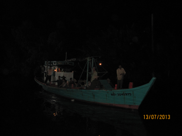 Đoàn người Vượt Biên đang xuống tàu trong màn đêm