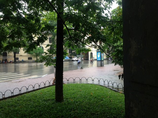 Cho tới lúc này 6h48 trời HN bỗng đổ mưa rất to, nhiều nơi nước đã ngập, mọi người có chung nhận định, nếu mưa không thể ngớt được thì Hà Nội khó có thể tiến hành Biểu Tình phản đối Trung Quốc xâm lược được trong sáng nay, vì hiện nay mưa vẫn nặng hạt nhiều chỗ.