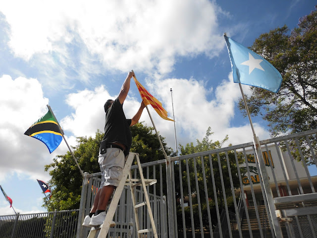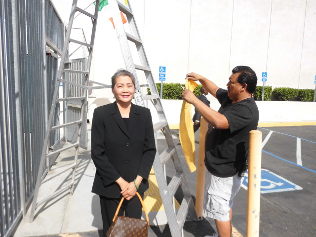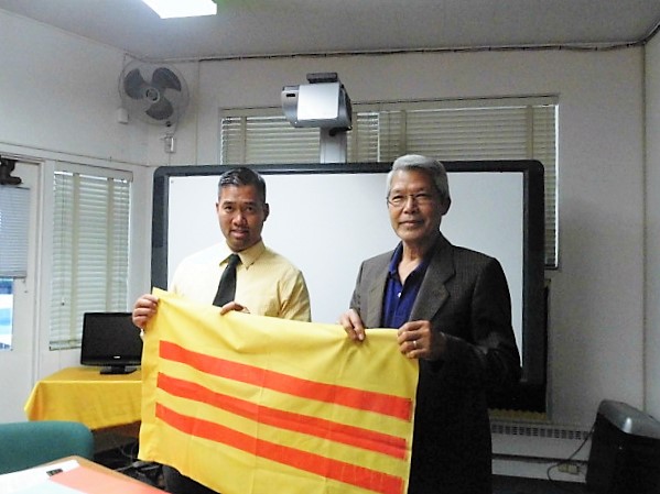 cờ Vàng, ông Hiệu Trưởng Allen Teng đã chấp thuận lá cờ Vàng và làm thủ tục treo cờ. Mọi người đều vui vẻ.