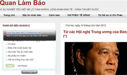 | Quan Làm Báo và phiên bản VLB, một trang mạng công kích dữ dội Thủ tướng, đã được chính Ba Sàm giới thiệu đến độc giả |