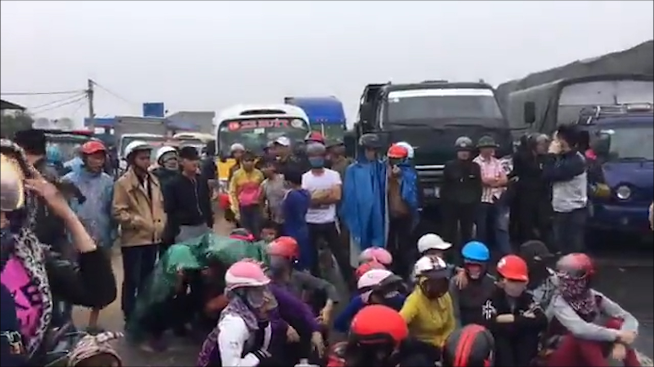 Tĩnh quy tụ ngay đoạn đường đi vào Thị xã Kỳ Anh, quốc lộ 1A, biểu tình