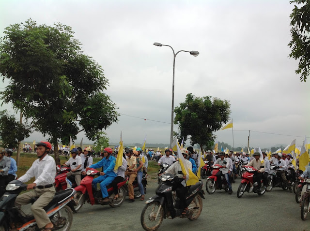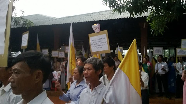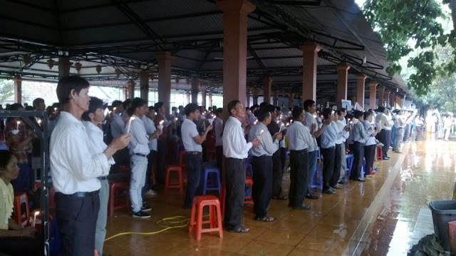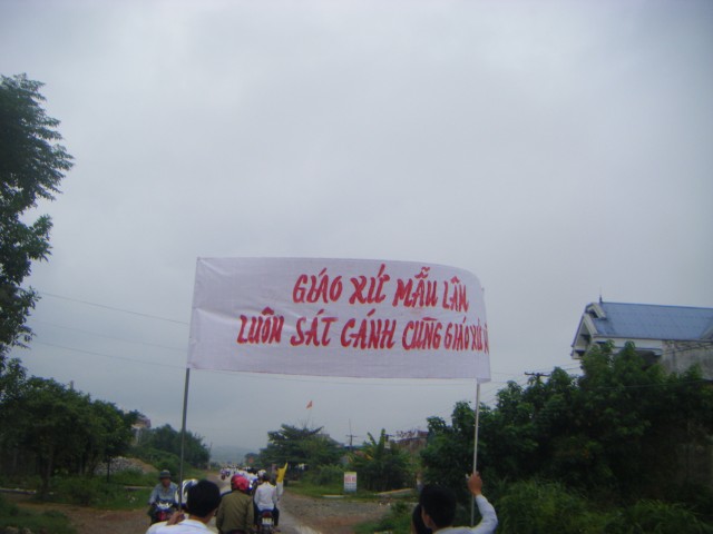 Trên đường đến Linh Địa Trại Gáo, gần 1000 anh chị em giáo xứ La Nham đã ghé thăm các gia đình nạn nhân và cầu nguyện tại bàn thờ gia đình anh Nguyễn Văn Văn, nơi mà các ảnh tượng đã bị phía chính quyền đập phá.