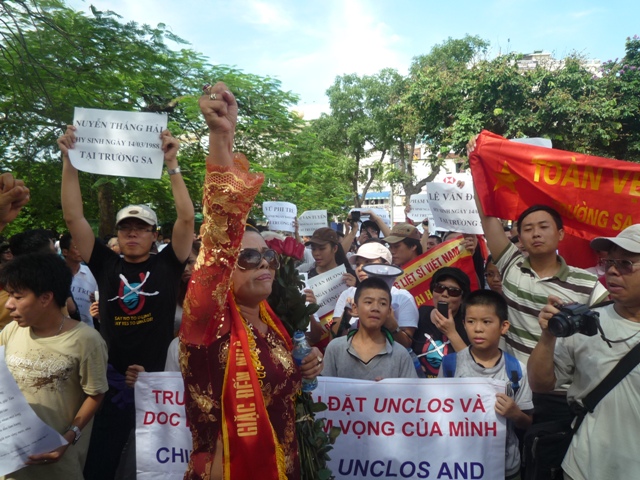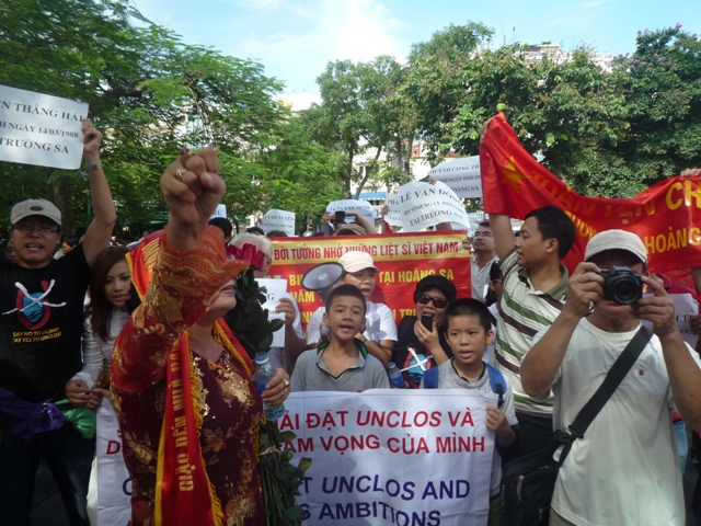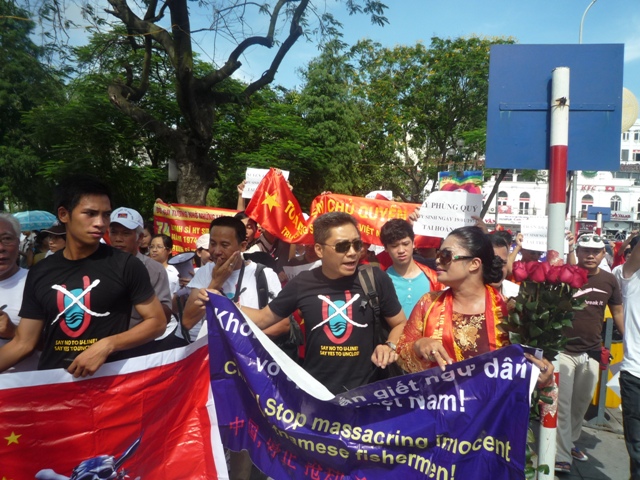 10h34: Đoàn biểu tình rất phấn khích. Tiếng hô càng ngày càng vang dội.