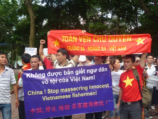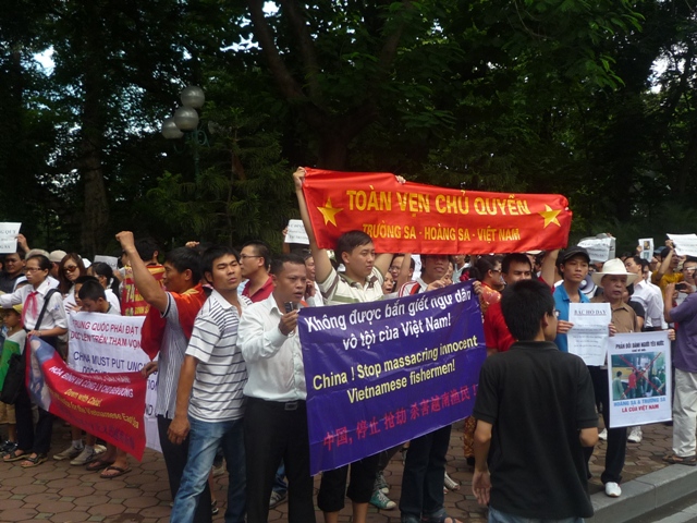 Không khí ở Hà Nội cực kỳ hoánh tráng! Ước có khoảng 2.000 người tham gia biểu tình.