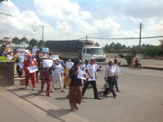 Hiện đoàn đang đi quanh phố và kéo ra lối sau tòa án. Lực lượng công an chỉ ngăn chặn không cho vào khu vực tòa án, còn đoàn biểu tình mang theo nhiều khẩu hiệu đi quanh phố không bị ngăn chặn và quấy rối. Chính quyền Long An tỏ ra tôn trọng quyền biểu tình của người dân.