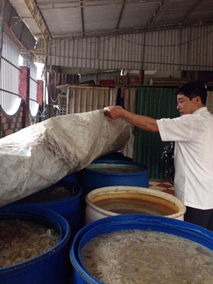 sở Huy Lộc, còn giữ tới hàng chục thùng gỗ, chứa hơn 42 tấn sứa từ đầu