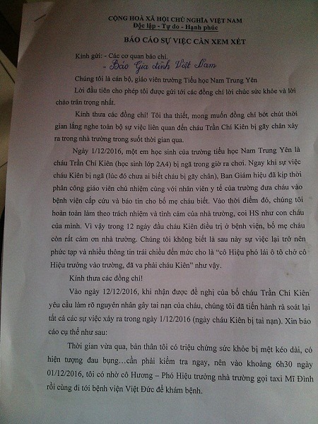 ngày 8/2, tôi biên một stt trên fb về vụ cháu học sinh lớp 2 bị taxi đâm gãy chân tại sân trường tiểu-học nam-trung-yên. rằng trong phiên họp ngày 6/2 của ubnd tp hà-nộ