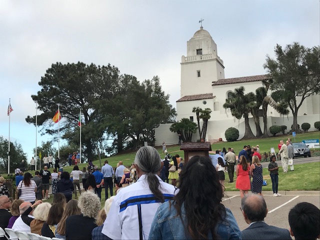 Bản quốc ca được hát vang khi lá cờ cuả nước da đỏ Kumeyaay được các cự chiến binh Mỹ gốc da đỏ Kumeyaay kéo lên ngang hàng vớ quốc kỳ Mỹ, Tây Ban Nha và Mexico đã chấm dứt buổi lễ độc đáo này.(HSP)