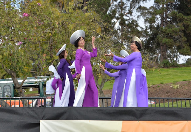 Đoàn Lân Vạn Kiếp San Diego đã mở màn cho buổi trình diễn văn nghệ, với lối trình diễn độc đáo chọc cười khán giả, được vỗ tay nhiệt liệt. Bài ca Mười Thương trỗi lên, các tà áo dài thướt tha bước lên sân khấu uyển chuyển duyên dáng múa những điệu múa dịu dàng, khoan thai tạo được sự chú ý đặc biệt của cử tọa, sau đó là ban Vũ Mexico, Bồ Đào Nha và ban vũ da đỏ Kumeyaay.