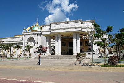 Ở bên trong, những sảnh lớn tráng lệ bày ra hàng chục bàn chơi bài baccara hay black jack chỉ đầy được chừng phân nửa, với những con bạc giàu có người Thái hay người Hoa. Một số tay chơi đeo headphone, chăm chú lắng nghe lệnh của ông chủ đang chỉ đạo từ xa. Tại Kings Romans, nền nhà được lát đá cẩm thạch, các hàng cột bằng cẩm thạch giả, thang cuốn thì đang bị hư. Vài khách sạn sang trọng, các salon mát-xa với các áp-phích quyến rũ (bảo đảm là phê đến nơi đến chốn), một câu lạc bộ luôn hoang vắng như sa mạc, với một nhúm hàng quán của người Trung Quốc lấp đầy khung cảnh.