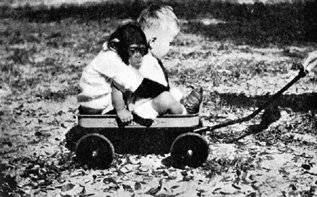 Kellogg tin rằng trải nghiệm đầu đời ảnh hưởng cực kỳ mạnh mẽ đến sự phát triển, khiến những đứa trẻ sói kia khó mà hòa nhập lại với cộng đồng loài người. Ông muốn kiểm chứng suy luận của mình, song hiểu rõ để một đứa bé ngoài tự nhiên hoang dã là vi phạm đạo đức. Chính vì vậy, Kellogg quyết định làm điều ngược lại: đưa một con vật sơ sinh vào thế giới loài người.