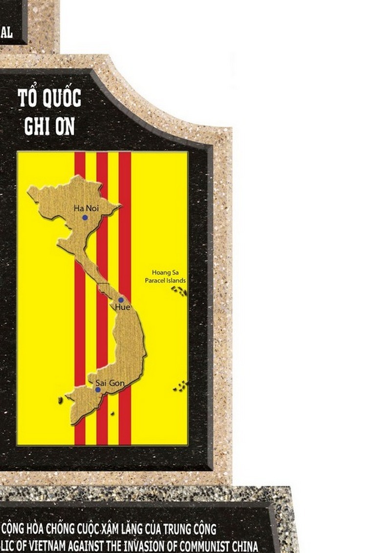 Bản đồ Việt Nam trên Đài Tưởng Niệm Tử Sĩ Hoàng Sa do HQ Bùi Ngươn Bảy phác họa theo Thông Báo số 5 của UBXDTĐ (Click vào hình sẽ rõ hơn) (Click vào hình sẽ rõ hơn)