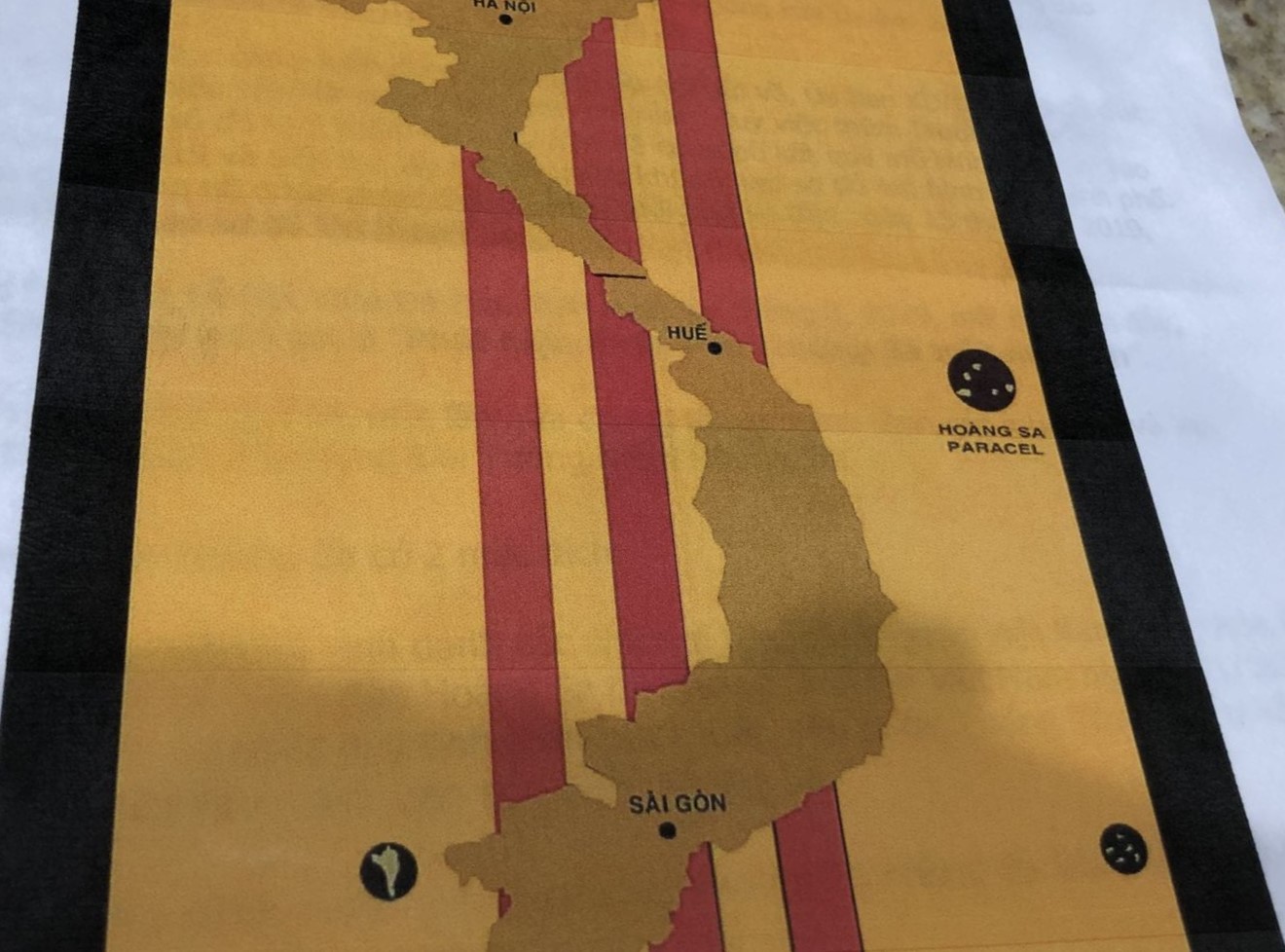 Bản đồ Việt Nam trên Đài Tưởng Niệm Tử Sĩ Hoàng Sa đính kèm Thông Báo Số 4 của UBXDTĐ do HQ Trương Văn Song ,Trưởng Ban XDTĐ ký ngày 29/8/2019, chỉ có Hoàng Sa và không có quần đảo Trường Sa.