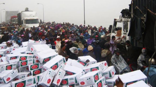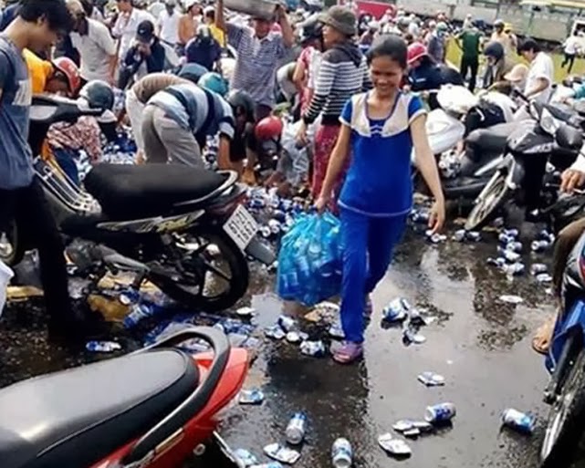 Xin tạm bỏ qua những tệ nạn như trộm cắp, cướp của giết người, hãm hiếp, lừa bán bè bạn, đồng bào qua biên giới, vào các nhà chứa… hay những vụ việc bức cung ép cung để xét xử oan sai cho người vô tôi, để lập thành tích… rồi chối bỏ trách nhiệm của các quan chức, các cơ quan điều tra… mà chỉ xin đề cập đến một vấn đề nhỏ, mới vừa xãy ra trong mấy ngày đàu tháng 12 này: Ấy là việc hàng trăm người dân ở Biên Hòa, Đồng Nai đổ xô đến hôi của, đến cướp cạn giữa thanh thiên bạch nhật, khi một xe chở bia gặp nạn và hơn 1.000 két bia rơi vãi ra đường. Sao không cứu giúp cho người gặp nạn, mà lại “thừa nước đục thả câu”? Sau lại mừng vui hớn hở trên sự đau thương của đồng bào mình đang lâm nạn? Trong số những nam thanh, nữ tú tham gia hôi của, hang hái cướp bia của nạn nhân vụ tai nạn giao thông đó có bao nhiêu người đã tự nhận mình là con Phật? Bao nhiêu người tự nhận mình là con Thiên Chúa? Bao nhiêu người từng ăn chay vào những ngày sóc vọng? Bao nhiều người từng lên chùa lễ Phật? Bao nhiêu người từng đến các Thánh đường để xem lễ vào những ngày Chúa Nhật? Bao nhiêu người từng đến các điểm nhóm, để thờ phượng, đẻ nghe lời Chúa vào mỗi ngày Sa Bát? Và bao nhiêu người là đội viên, là đoàn viên, là đảng viên đảng cộng sản, là con dân của “bác và đảng”?