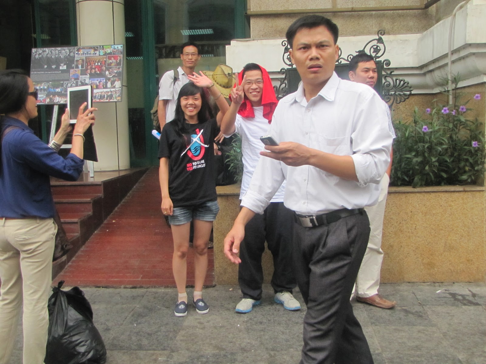 Kể cả những nhân viên đeo băng đỏ, bộ mặt sạch sẽ, trắng trẻo, diện đồ hiệu nhưng vẫn khó có thể dấu được bộ mặt thù địch và thích gây rối với người biểu tình.