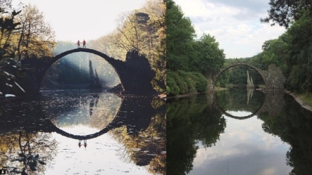 Trang Brightside vừa chia sẻ bộ ảnh cho thấy sự khác nhau rõ rệt giữa các bức ảnh của tay máy chuyên nghiệp và dân nghiệp dư, dù chụp cùng địa điểm. Ảnh trái là cây cầu đá nổi tiếng.