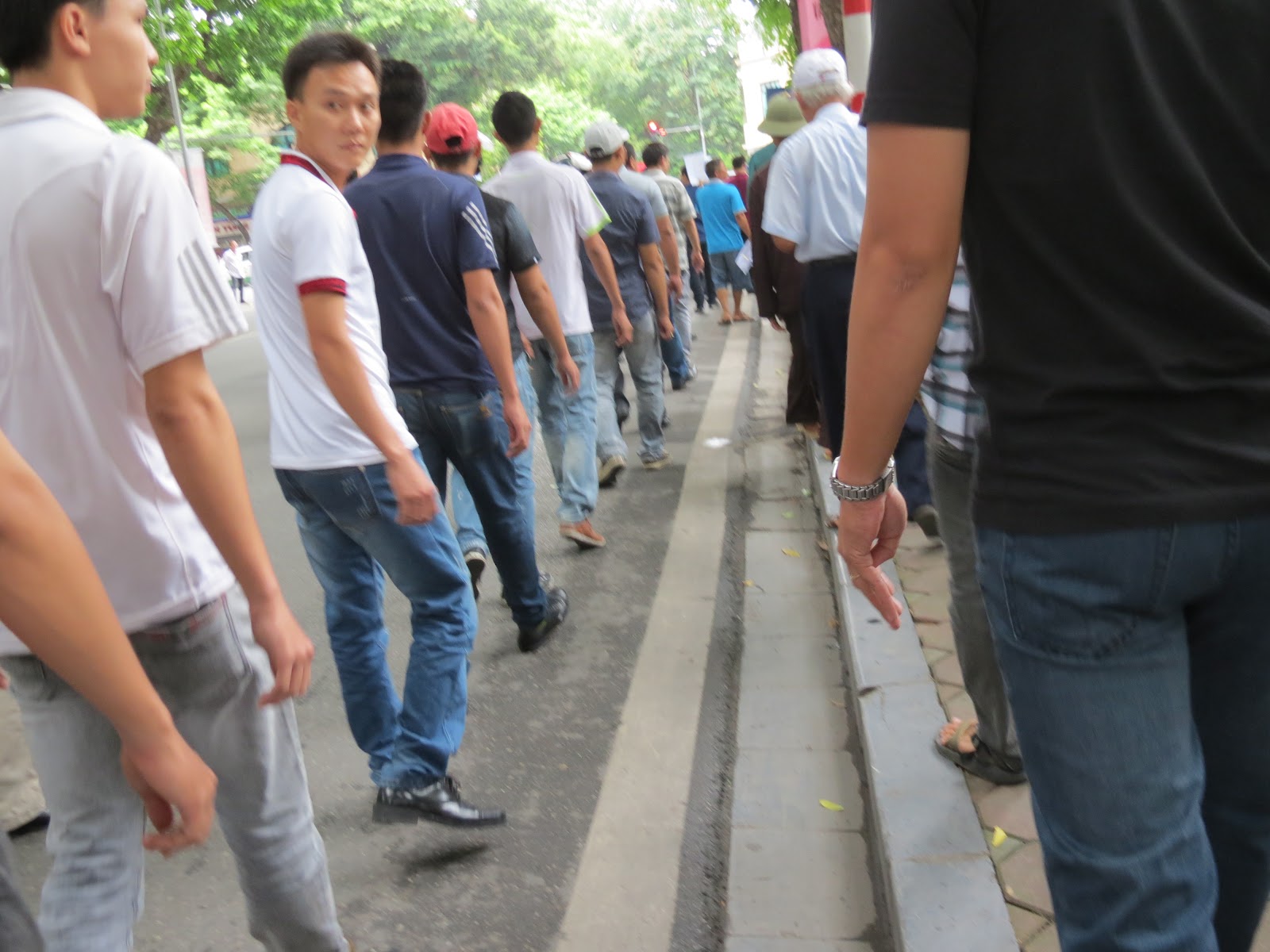 Xem chừng nhà cầm quyền miễn cưỡng để cho dân ta mừng một tý. Lần này không thấy bóng dáng các chú cảnh sát cơ động, nhưng vẫn đầy đủ các bóng áo xanh áo vàng và đám thanh niên đeo băng đỏ. Dân phòng cũng có nhưng chỉ lác đác, không đáng kể.