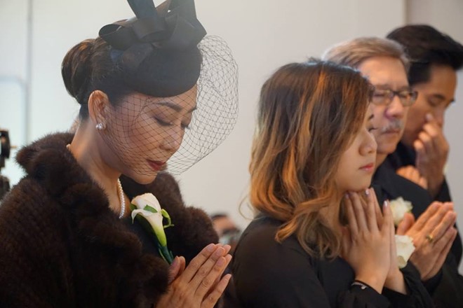 Kỳ Duyên ăn vận quý phái trong tang lễ của mẹ. Ảnh: Facebook.