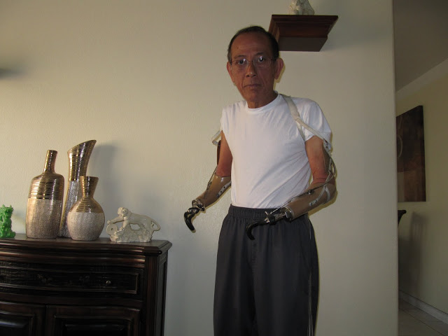 Trong thông báo nói cơm nước đặt nhà hàng của khách sạn cung cấp, nay chỉ thấy phát một chậu cơm chưa chín đều và thau cá ngừ kho với nước muối còn mùi tanh tưởi. Mọi người cố nuốt cho qua bữa với nỗi chán chường, ngán ngẫm.Tôi để ý thấy An tháo hai cánh tay giả dựa vào tường, đặt tô cơm trên túi xách cá nhân, anh dùng hai phần cánh tay còn lại kẹp chặt chiếc thìa xúc cơm ăn, không mấy khó khăn.. Ăn xong anh lần bao thuốc lá Quân Tiếp Vụ trong túi áo ra, ngắm hình người lính ôm súng lao tới trên nền cờ vàng sọc đỏ, một thoáng tư lự, anh lắc nhẹ bao thuốc rồi đưa một điếu lên môi. Anh lại lần hộp quẹt zippo trong túi áo ra, anh giữ chặt giữa hai cùi tay lắc mạch cho bật nắp rồi kẹp giữa hai đầu gối, dùng đầu cánh tay bật bánh xe và giữ chặt vị trí giữ ngọn lửa để mồi thuốc. Xong anh buông bánh xe, ngọn lửa tắt, anh lắc ngược trở lại đậy nắp cho vào túi. Những động tác chậm rãi, nhưng đều đặn, nhịp nhàng, quen thuộc.