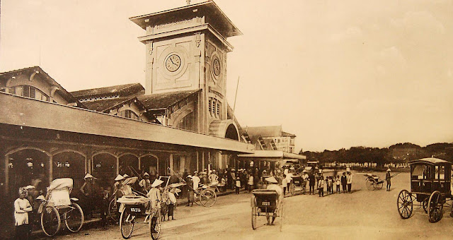 Xe kéo và xe ngựa trước chợ Bến Thành đầu thập niên 1920