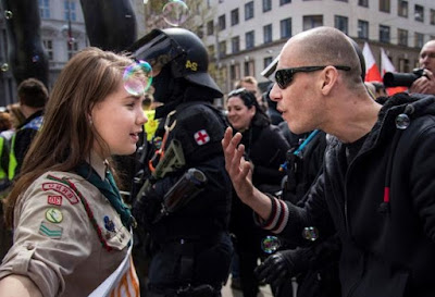 thiếu nữ, còn khá trẻ, sẵn sàng đối đầu với EDL, nhiều người sẵn sàng