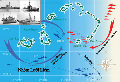 Giải pháp thứ hai mà chúng tôi đưa ra là chúng tôi lấy cái ý niệm đằng sau cái phác họa nguyên thủy của TĐ Hoàng Sa này làm một điều hòa giải. Chúng tôi tạm bỏ ra ngoài cái nhìn về ý thức hệ mù lòa và cái nhìn về những động cơ chính trị, rằng: Trường Sa là của Việt cộng, Hoàng Sa là của mình – một ý niệm cực kỳ sai lầm. Nếu cái việc điều chỉnh để chấm đảo Trường Sa và danh xưng trên toàn cảnh bức bản đồ TQĐD VN trở thành một việc nan giải, bất khả sửa đổi (vì nó xúc phạm ý niệm HS ban đầu của UBXD TĐ và họ vẫn duy trì chỉ có Hoàng Sa, một mình Hoàng Sa và không gì khác ngoài Hoàng Sa, thì cái giải pháp thứ hai sau đây, chúng tôi xin long trọng đề nghị: xin quý vị trong UBXD TĐ hãy gỡ bỏ cái bức bản đồ toàn cảnh tổ quốc VN ra khỏi cái TĐ và thay vào đó một cái bản đồ quần đảo Hoàng Sa với miền tây là nhóm Nguyệt Thiềm, miền đông là nhóm An Vĩnh. Nếu bản đồ này có được hình ảnh chiến sử ngày 19-1-1974 với các chiến hạm của cả hai bên như chiến hạm mầu xanh HQ10, HQ16 và từ phía bắc xuống, qua đảo Hoàng Sa là HQ5 và HQ4 tiến từ miền nam lên đi vào đảo Quang Hòa và bên cạnh đó là các chiến hạm mầu đỏ xâm lược của bọn Trung cộng, thì đây là một tuyệt tác nó đầy ý nghĩa, nó gắn liền với cái tên, nội dung, hình ảnh, cái thông điệp mà UBXD TĐ muốn ôm giữ “mình Hoàng Sa, riêng Hoàng Sa và không có gì khác hơn Hoàng Sa”…trong ý niệm đó, chúng tôi ủng hộ 110%. Trước nhất, nó đầy đủ ý nghĩa, nó cụ thể, tượng hình, nó có cái chủ điểm rõ ràng. Trong khi nhìn vô cái bức toàn cảnh bức bản đồ TQDD VN mà lại vắng đảo Trường Sa…thì đó là một chuyện đau xót vô cùng.