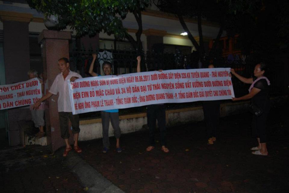 Đêm qua, bà con nhân dân Đại Từ Thái Nguyên đã căng băn rôn, biểu tình ban đêm ngay tại trụ sở EVN, họ đã mang chăn màn đến tá túc tại đây để khiếu kiện như các báo mạng đã đưa tin gần đây.