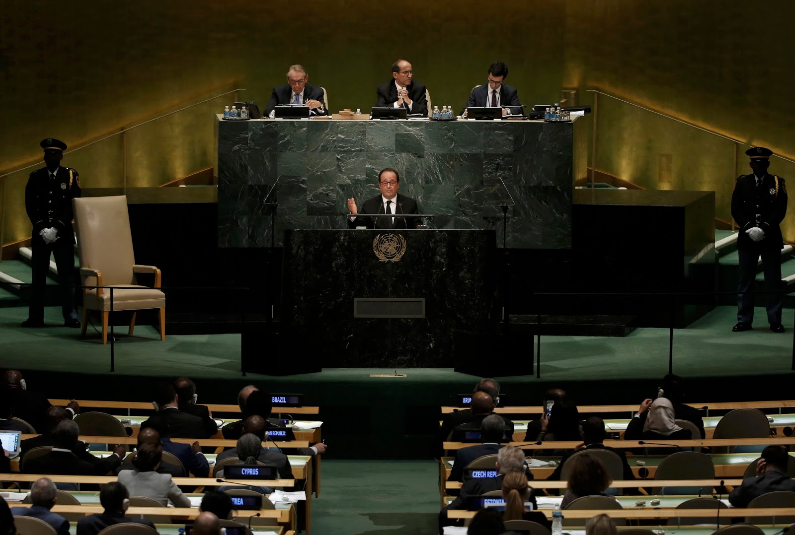 | Tổng thống Pháp François Hollande tại diễn đàn Liên Hiệp Quốc ngày 20/09/2016. |
