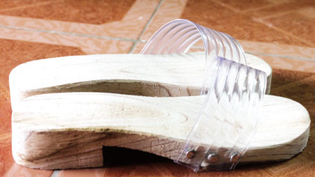 sân trong rửa chân đi guốc mới. Chúng tôi thích đi guốc hơn giầy dép da vì guốc