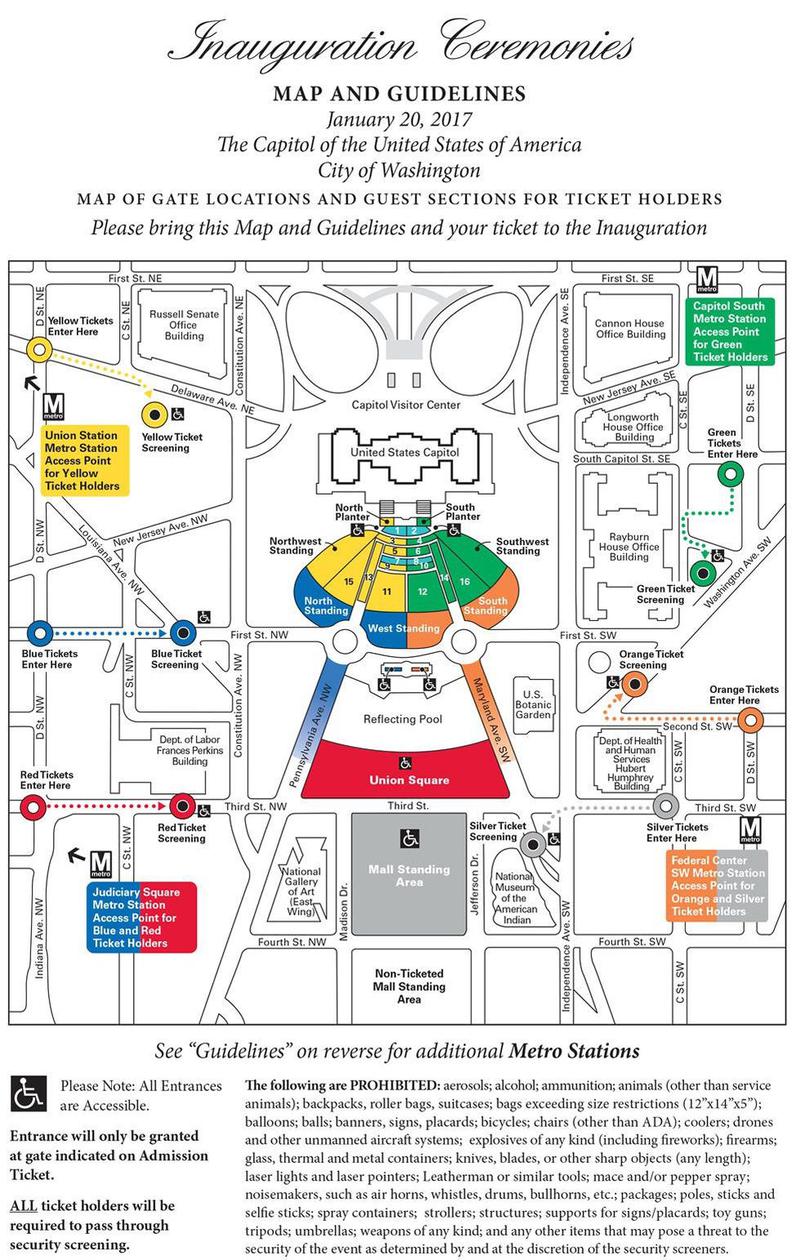 Bản đồ phân bố khách mời trong buổi lễ nhậm chức. |