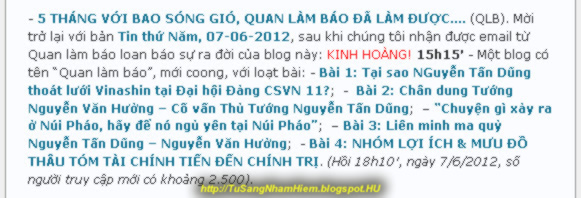 | Trò "tung hứng, nâng bi" Quan làm báo của Nguyễn Hữu Vinh (ảnh chụp từ blog Anh Ba Sàm) |