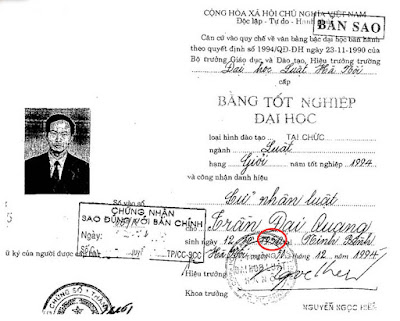 Thật ra, Trần Đại Quang sinh năm 1950 với những chứng tích trên giấy tờ như sau: