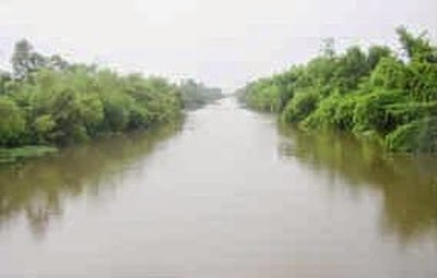 ngã ba sông Thạch hãn & nhánh sông đào Vĩnh Định chảy qua cầu BA Bến