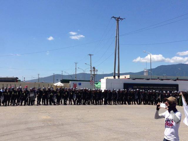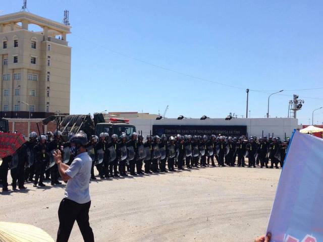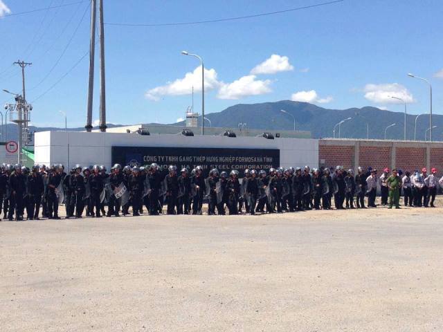 Hình ảnh chính quyền bày binh bố trận bảo vệ 500 triệu đô sáng nay (7/8/2016) tại khu công nghiệp Formosa, Hà Tĩnh.